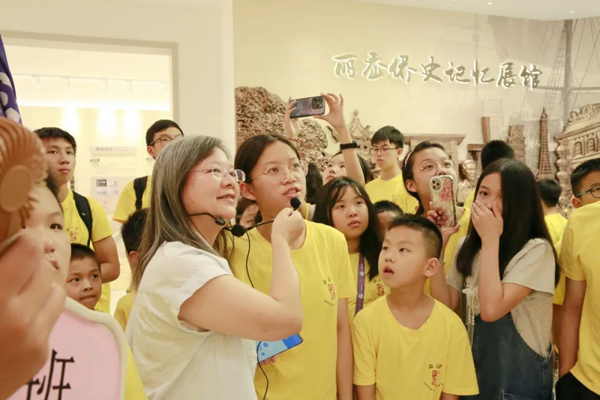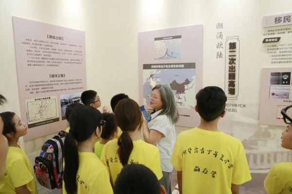 在丽岙侨史记忆展馆里,温州大学人文学院教授李勇为营员们生动讲解丽岙的华侨历史与根脉文化。民国初年,丽岙拉开出国序幕,在林岩溥、陈仁德等先驱的引领下,筚路蓝缕、艰难困苦,经百年沉淀,丽岙侨胞谱写了“一镇通五洲”的百年侨史脉动。