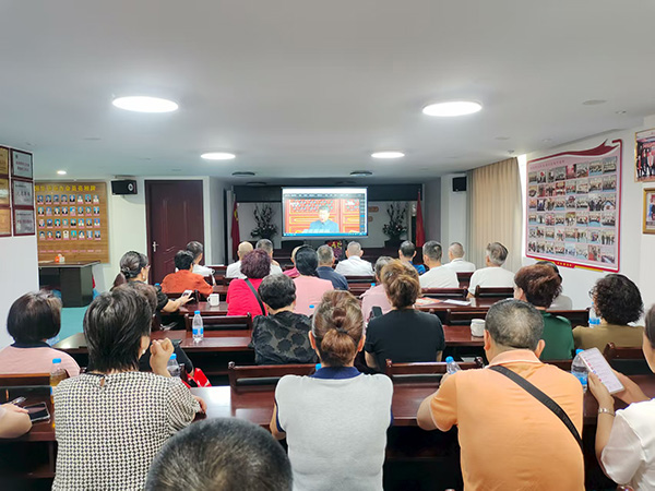当天九点不到,与会人员就早早来到丽岙街道华侨服务中心二楼会议室,他们怀着崇敬的心情等待大会开始。北京时间9时纪念大会正式开始,中共中央总书记、国家主席、中央军委主席习近平发表重要讲话并检阅部队。大家全神贯注地观看直播,认真聆听习近平总书记的重要讲话,共同回顾中国人民抗日战争的光辉历史,深刻感悟抗战精神的伟大力量。